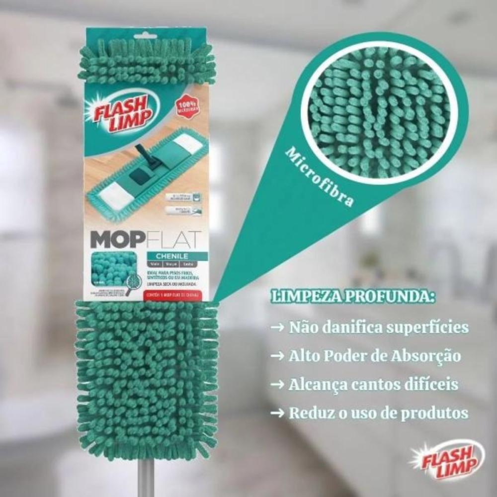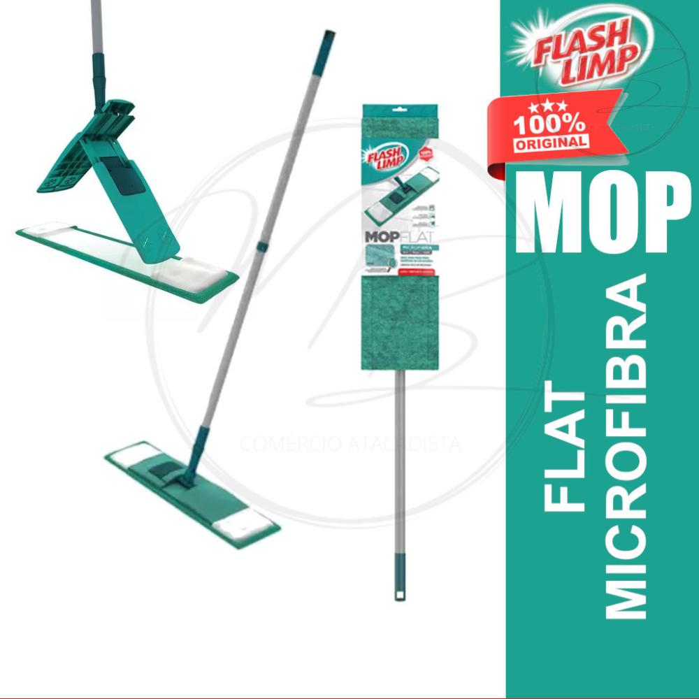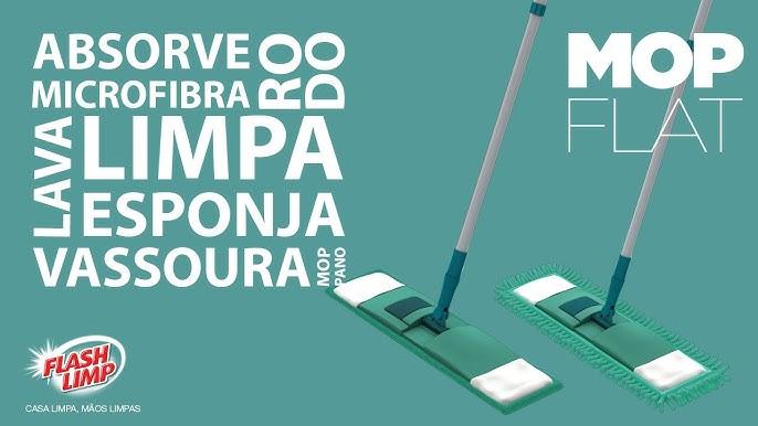 Os mops do tipo Flat da Flash Limp são projetados para substituir a vassoura, o rodo e o pano de chão, sendo indicados para pisos frios, sintéticos ou de madeira.