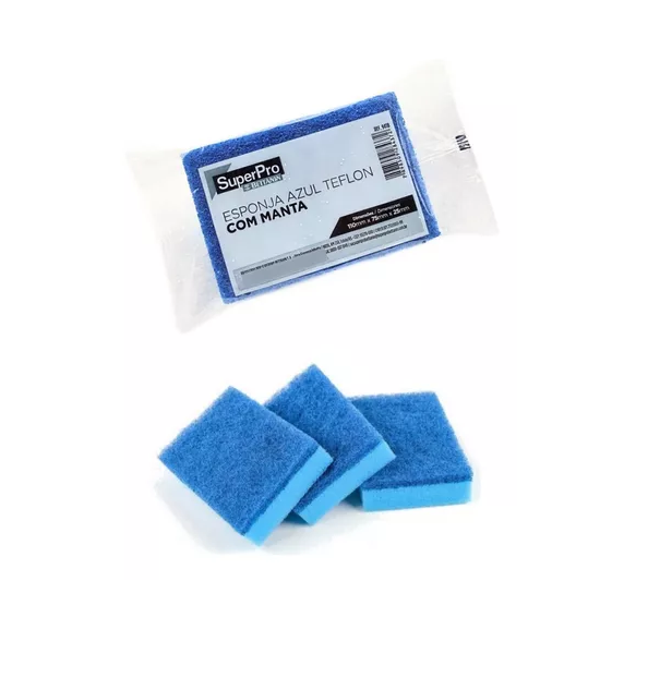 Esponja azul Teflon é uma esponja multiuso projetada especificamente para limpar superfícies delicadas e com revestimento antiaderente sem riscar.