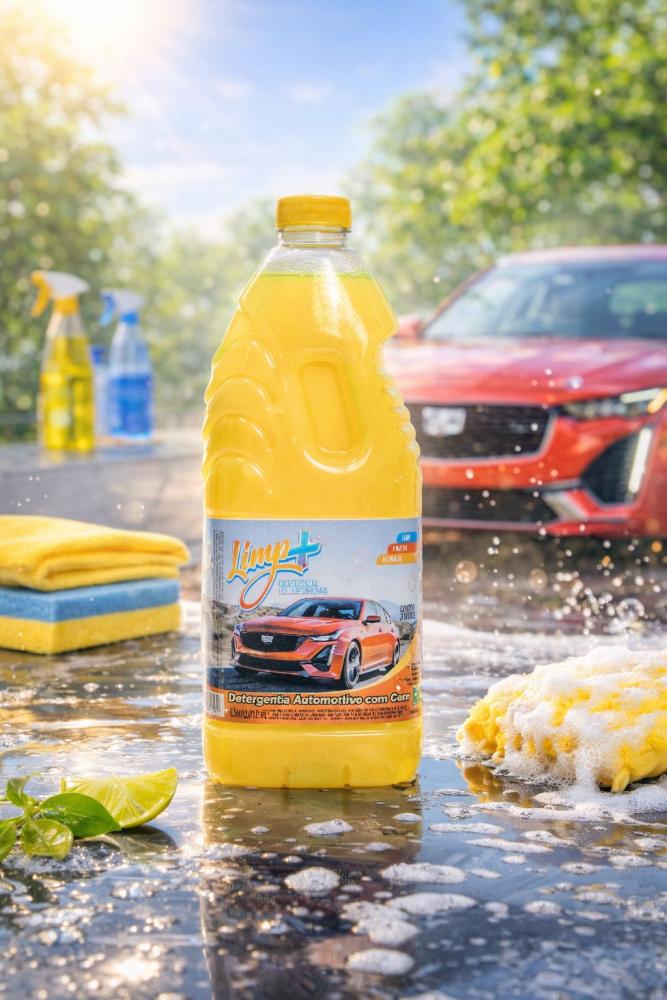Detergentes automotivos com cera é um produto 2 em 1 que limpam e protegem a pintura, oferecendo brilho e repelência à água em uma única etapa.