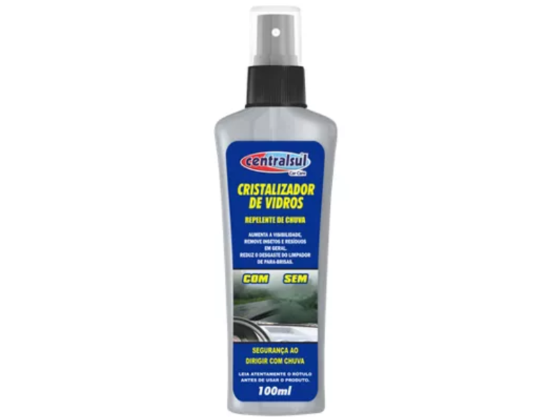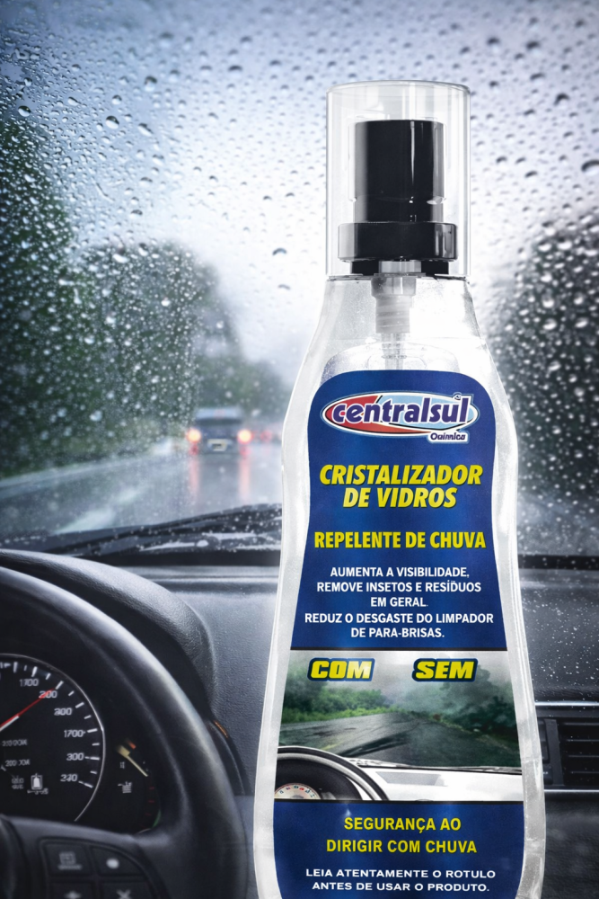 O Cristalizador de Vidros Centralsul é um produto repelente de água projetado para melhorar a visibilidade em dias de chuva, criando uma película invisível que faz a água deslizar rapidamente